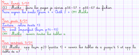 Parents : Signer les cahiers et le comportement et compléter la trousse